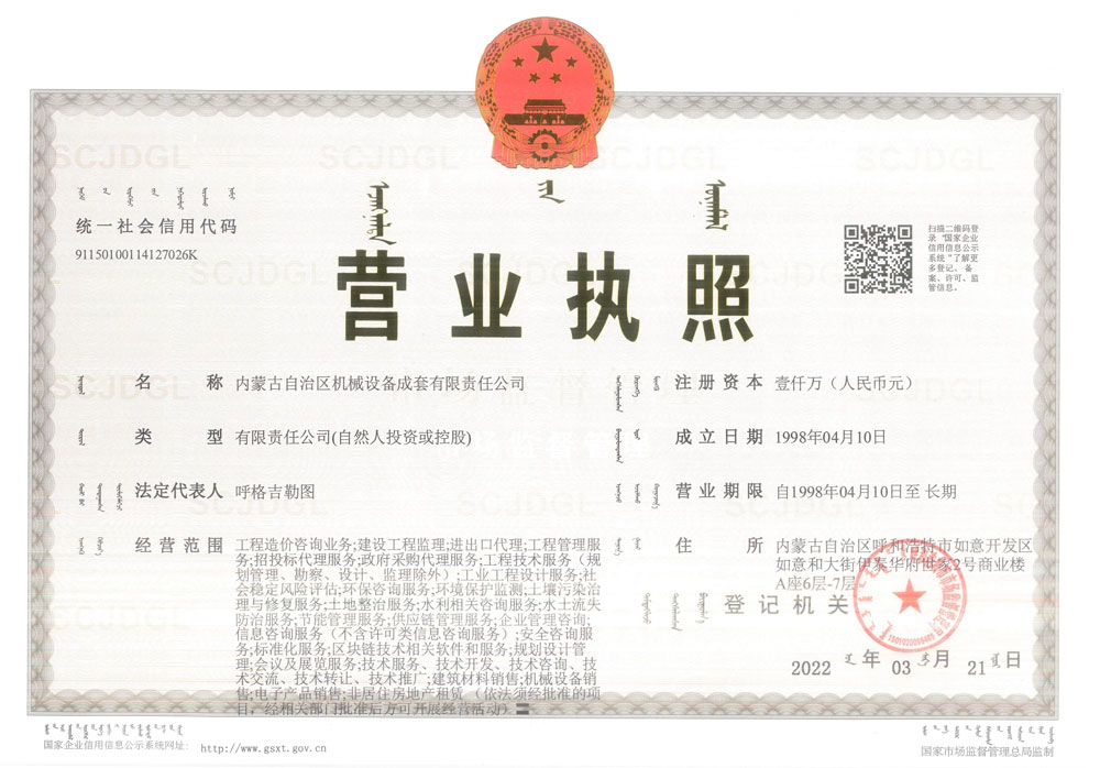 內(nèi)蒙古自治區(qū)機械設備成套有限責任公司營業(yè)執(zhí)照